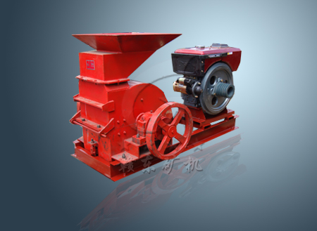 上图为400*600打砂机配套柴油机总装产品图 锤子(又称锤头)的转子、转子由主轴、圆盘、销轴和锤子、电机或柴油机、底座支架组成