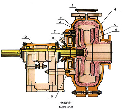 该系列泵为卧式、垂直中开式、双泵壳结构,泵体和泵盖带有可更换的金属内衬或橡胶内衬,内衬可一直用到磨穿为止,不用更换,延长维修周期,降低运行成本。