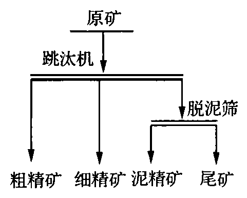 半工业试验采用小型锯齿波跳汰机,筛板面积为0.36m2 。半工业试验和实验室小型试验流程基本一致,都采用-20mm全粒级入选工艺(见右图)